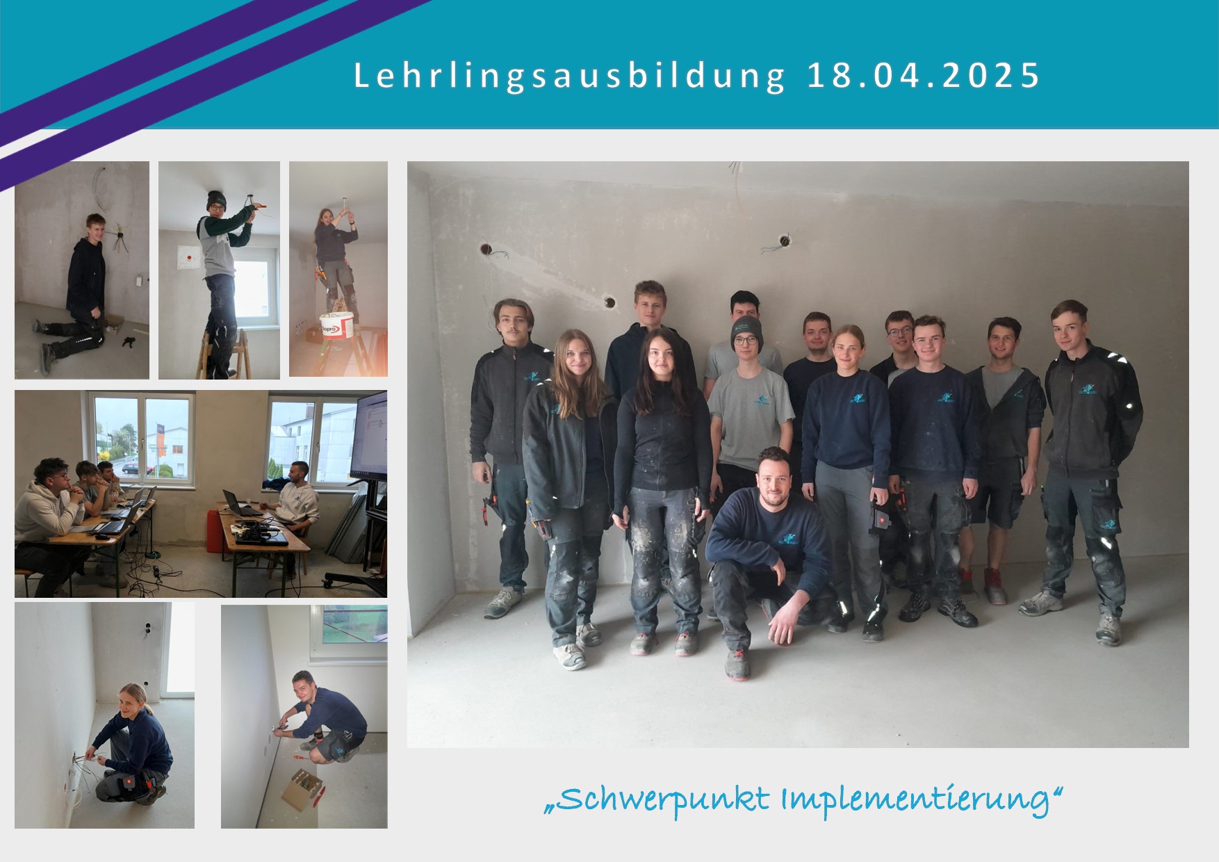 Die Lehrlingsausbildung am 18. April 2025 befasste sich intensiv mit dem Schwerpunkt "Implementierung". Dabei achteten die Ausbildner Sascha, Lukas und Florian speziell auf die genaue, saubere und zielorientierte Ausführung der Tätigkeit.